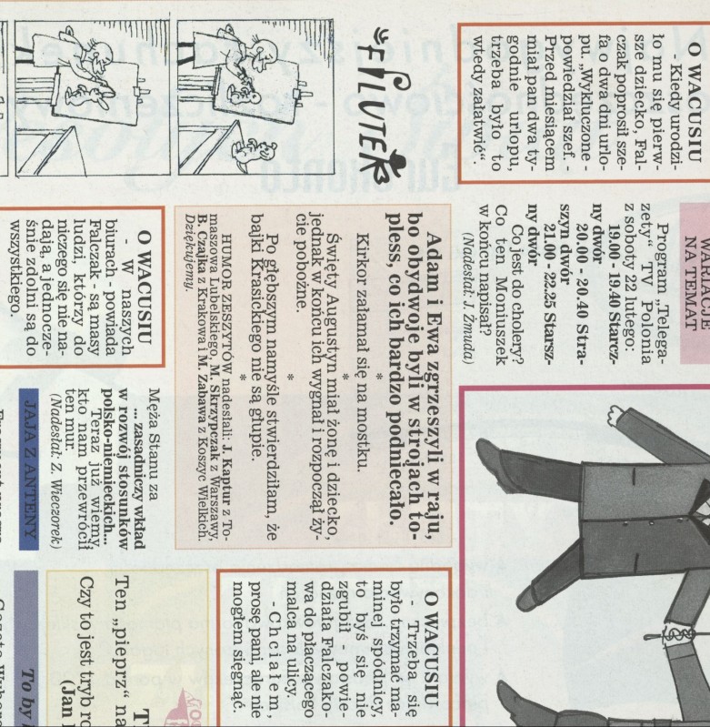 Archiwum / O Wacusiu nr 2701 (13/1997) 14/50 Podziel się Tytuł O Wacusiu Rubryka O Wacusiu Artykuł z numeru 2701 (13/1997) Data wydania 30 marca 1997 Tagi Falczak
