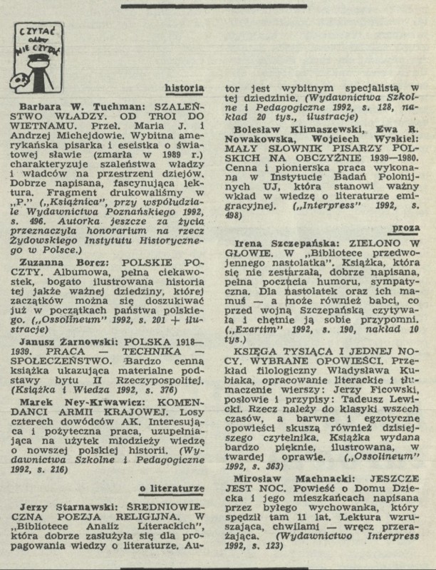 Archiwum / Czytać albo nie czytać? nr 2469 (24/1992) 178/199 Podziel się Tytuł Czytać albo nie czytać? Rubryka Czytać albo nie czytać? Artykuł z numeru 2469 (2470/1992) Data wydania 18 października 1992
