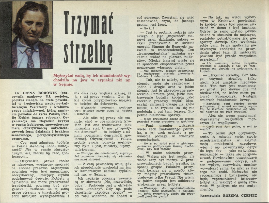 Archiwum / Rozmowy „Przekroju” nr 2469 (24/1992) 128/149 Podziel się Tytuł Trzymać strzelbę Autor Bożena Czepiec Rubryka Rozmowy „Przekroju” Artykuł z numeru 2469 (2470/1992) Data wydania 18 października 1992