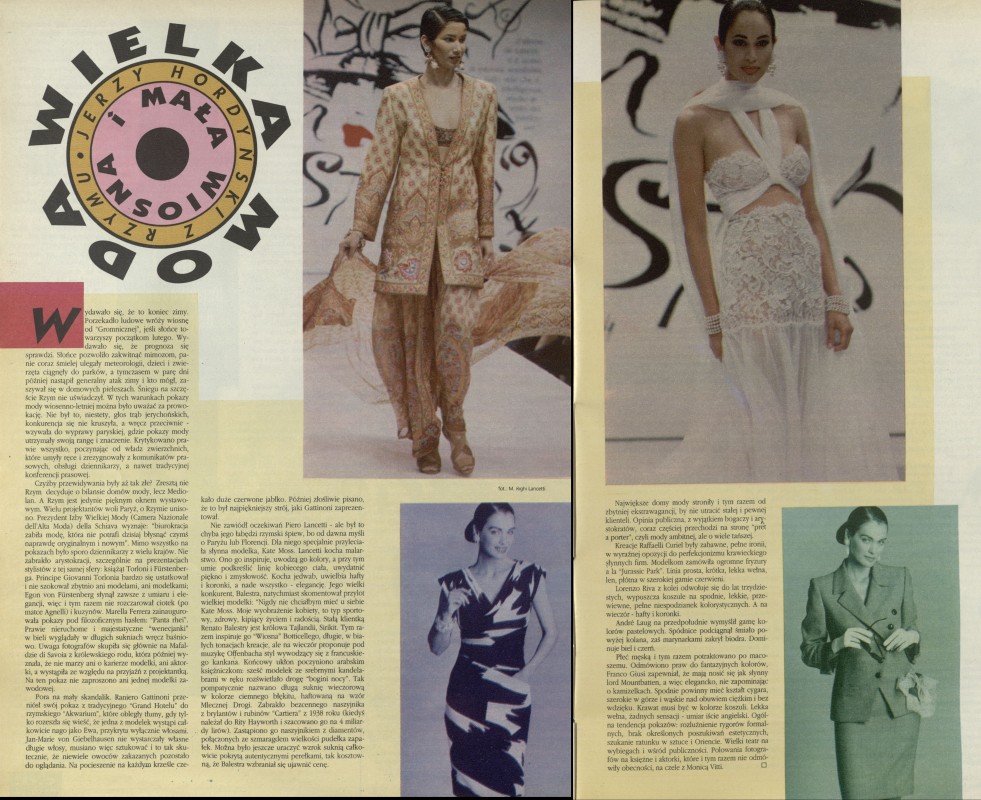 Archiwum / Moda nr specjalny 11/1994 37/164 Podziel się Tytuł Wielka moda i mała wiosna Autor Jerzy Hordyński Rubryka Moda Artykuł z numeru nr specjalny 11/1994 Data wydania 13 marca 1994 Tagi Rzym domy mody wiosna