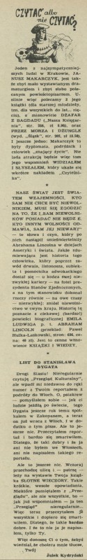 Archiwum / Czytać albo nie czytać? nr 648 (37/1957) 25817/123969 Podziel się Tytuł Czytać albo nie czytać Autor Juliusz Kydryński Rubryka Czytać albo nie czytać? Artykuł z numeru 648 (37/1957) Data wydania 8 września 1957 Tagi Makarczyk Dygat