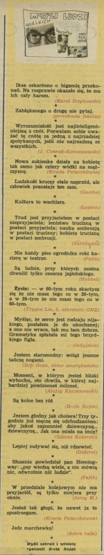 Archiwum / Myśli ludzi wielkich, średnich i psa Fafika nr 648 (37/1957) 76/173 Podziel się Tytuł Myśli ludzi wielkich i średnich oraz psa Fafika Autor Bracia Rojek Rubryka Myśli ludzi wielkich, średnich i psa Fafika Artykuł z numeru 648 (37/1957) Data wydania 8 września 1957 Tagi cytaty aforyzmy