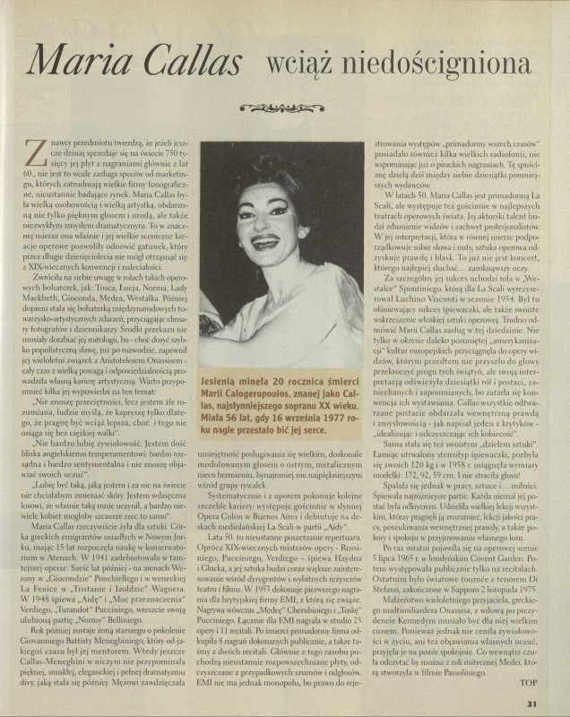 Archiwum nr 2738 (50/1997) 117493/123969 Podziel się Tytuł Maria Callas wciąż niedościgniona Autor Top Artykuł z numeru 2738 (50/1997) Data wydania 14 grudnia 1997 Tagi La Scala opera