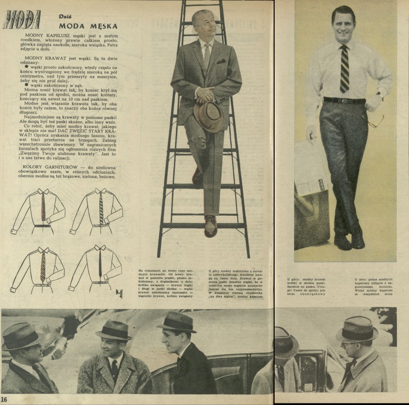 Archiwum / Moda nr 648 (37/1957) 3/4 Podziel się Tytuł Dziś moda męska Autor Barbara Hoff Rubryka Moda Artykuł z numeru 648 (37/1957) Data wydania 8 września 1957 Tagi moda męska garnitury kapelusze