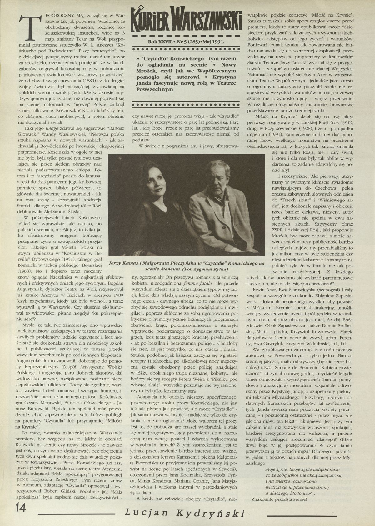 Archiwum / Kurier Warszawski nr 2555 (24/1994) 3/4 Podziel się Tytuł Kurier Warszawski Autor Lucjan Kydryński Rubryka Kurier Warszawski Artykuł z numeru 2555 (24/1994) Data wydania 12 czerwca 1994 Tagi kurier Warszawa