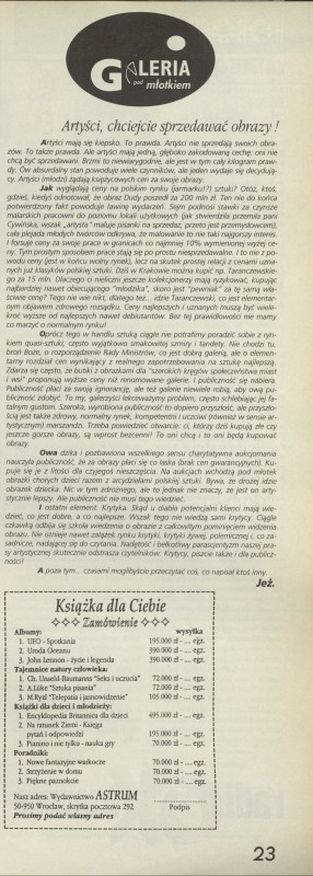 Archiwum / Różności nr 2539 (08/1994) 14/54 Podziel się Tytuł Galeria pod młotkiem Autor Jeż. Kategoria Różności Artykuł z numeru 2539 (8/1994) Data wydania 20 lutego 1994 Tagi sztuka handel dziełami sztuki