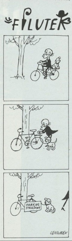 Archiwum / Profesor Filutek nr 2724 (36/1997) 182/189 Podziel się Tytuł Prof. Filutek Autor Zbigniew Lengren Rubryka Profesor Filutek Artykuł z numeru 2724 (36/1997) Data wydania 7 września 1997 Tagi żart rysunkowy pies Filuś rower parking strzeżony
