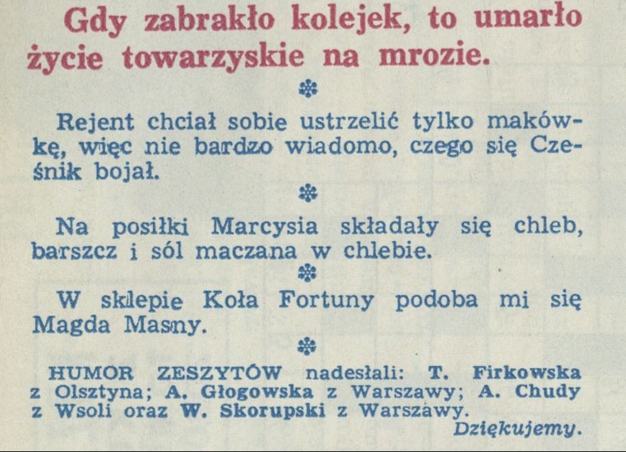 Archiwum / Humor zeszytów szkolnych nr 2539 (08/1994) 07/44 Podziel się Tytuł Humor zeszytów Rubryka Humor zeszytów szkolnych Artykuł z numeru 2539 (8/1994) Data wydania 20 lutego 1994 Tagi humor zeszytów