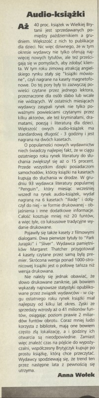 Archiwum / Książki nr 2547 (16/1994) 106804/123969 Podziel się Tytuł Audio-książki Autor Anna Wołek Rubryka Książki Artykuł z numeru 2547 (16/1994) Data wydania 17 kwietnia 1994 Tagi audio-książka audiobook