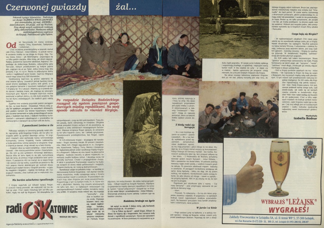 Archiwum / Społeczeństwo nr 2548 (17/1994) 106872/123969 Podziel się Tytuł Czerwonej gwiazdy żal... Autor Elżbieta i Andrzej Lisowscy Kategoria Społeczeństwo Artykuł z numeru 2548 (17/1994) Data wydania 24 kwietnia 1994 Tagi ZSRR Kirgizja