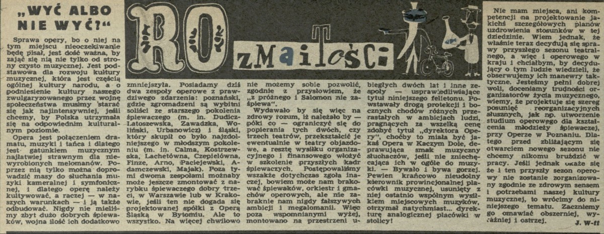 Archiwum / Rozmaitości [old] nr 120 (30/1947) 3492/123969 Podziel się Tytuł Wyć albo nie wyć? Autor W-ff. J. Rubryka Rozmaitości [old] Artykuł z numeru 120 (30/1947) Data wydania 27 lipca 1947 Tagi opera