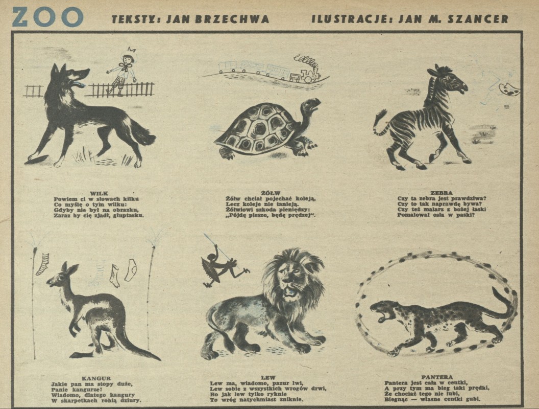 Archiwum / Poezja nr 139 (49/1947) 1008/1815 Podziel się Tytuł Zoo Autor Jan Brzechwa Kategoria Poezja Artykuł z numeru 139 (49/1947) Data wydania 7 grudnia 1947 Tagi Jan Brzechwa Jan M. Szancer