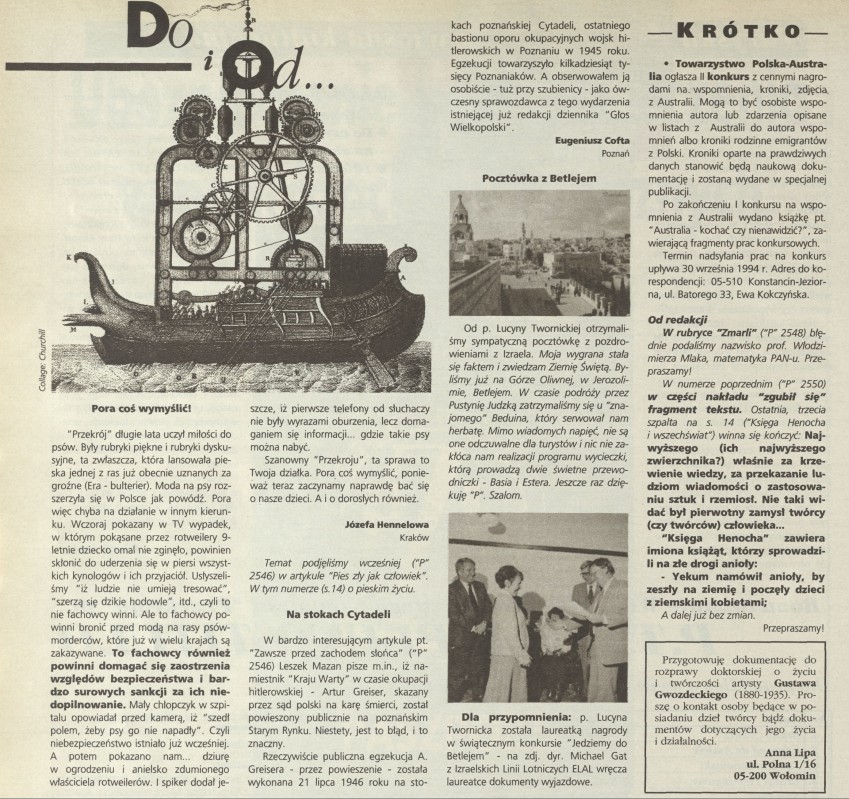 Archiwum / Listy do i od redakcji nr 2551 (20/1994) 33/51 Podziel się Tytuł [Listy] Rubryka Listy do i od redakcji Artykuł z numeru 2551 (20/1994) Data wydania 15 maja 1994 Tagi listy do redakcji
