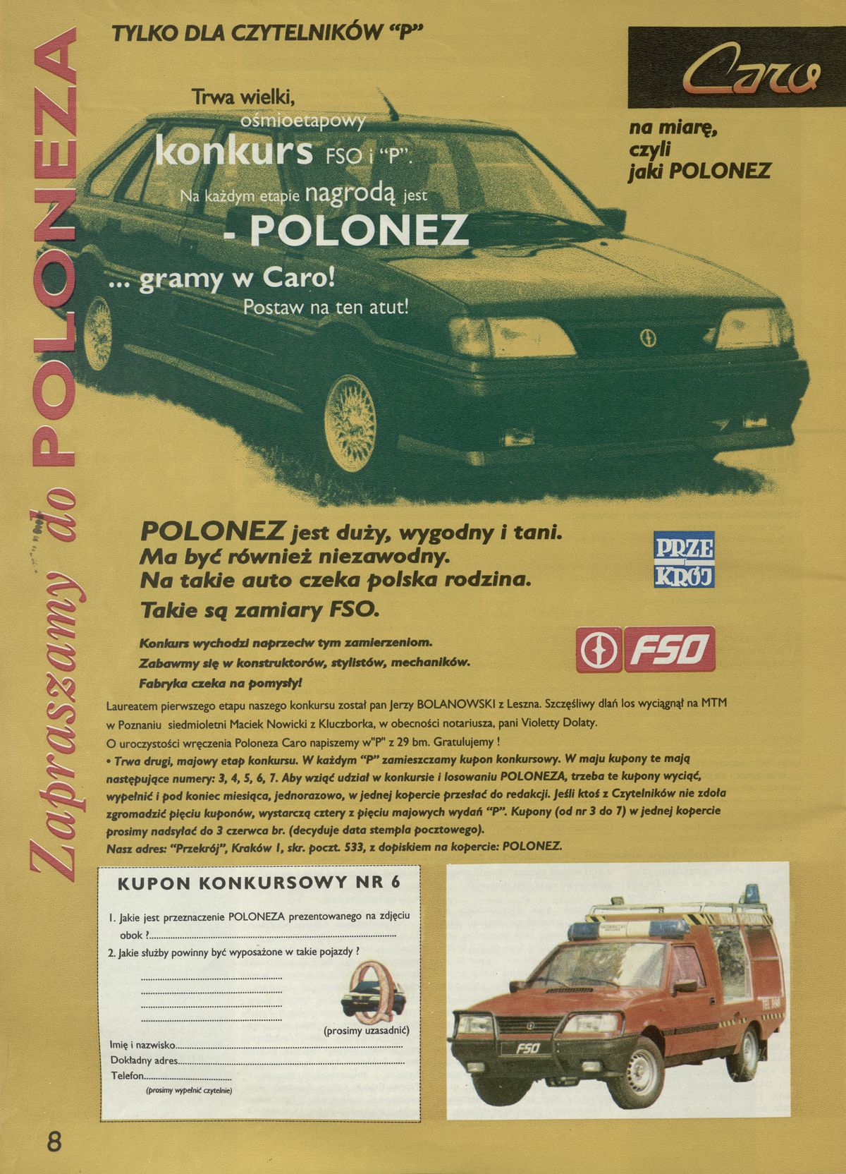Archiwum / Reklamy nr 2552 (21/1994) 16843/123969 Podziel się Tytuł [Reklama] Rubryka Reklamy Artykuł z numeru 2552 (21/1994) Data wydania 22 maja 1994 Tagi reklama polonez FSO