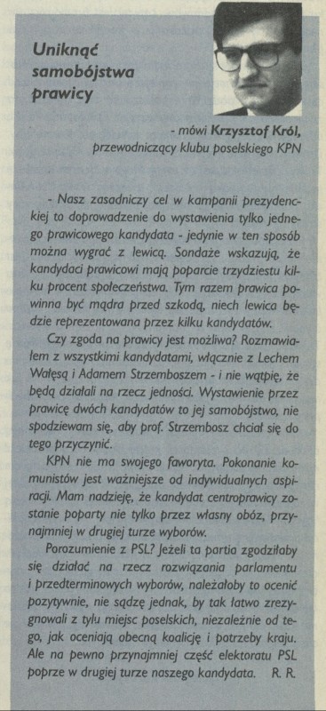 Archiwum / Opinie nr 2612 (29/1995) 110504/123969 Podziel się Tytuł Uniknąc samobójstwa prawicy Autor R. R. Kategoria Opinie Artykuł z numeru 2612 (29/1995) Data wydania 16 lipca 1995