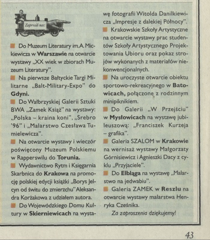 Archiwum / Zaprosili nas nr 2768 (27/1998) 119144/123969 Podziel się Tytuł Zaprosili nas Rubryka Zaprosili nas Artykuł z numeru 2768 (2769/1998) Data wydania 12 lipca 1998 Tagi galeria