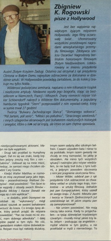 Archiwum / Wywiad nr specjalny 22/1994 129/294 Podziel się Tytuł Zwierzenia Billy'ego Wildera Autor Zbigniew K. Rogowski Kategoria Wywiad Artykuł z numeru nr specjalny 22/1994 Data wydania 29 maja 1994 Tagi Hollywood Billy Wilder wywiad