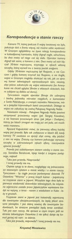 Archiwum / Felieton nr 2588 (05/1995) 124/248 Podziel się Tytuł Taki to świat. Korespondencja o stanie rzeczy Autor Krzysztof Mroziewicz Kategoria Felieton Artykuł z numeru 2588 (5/1995) Data wydania 29 stycznia 1995