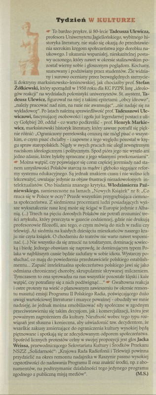 Archiwum / Tydzień w kulturze nr 2725 (37/1997) 63/81 Podziel się Tytuł Tydzień w kulturze Rubryka Tydzień w kulturze Artykuł z numeru 2725 (37/1997) Data wydania 14 września 1997