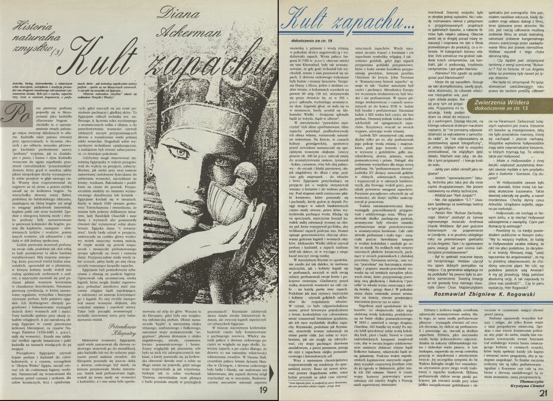 Archiwum / Nauka nr specjalny 22/1994 12/17 Podziel się Tytuł Kult zapachu Autor Diane Ackerman Katarzyna Chmiel Kategoria Nauka Artykuł z numeru nr specjalny 22/1994 Data wydania 29 maja 1994 Tagi literatura amerykańska "Historia naturalna zmysłów" zapach węch starożytny Egipt starożytne cywilizacje perfumy