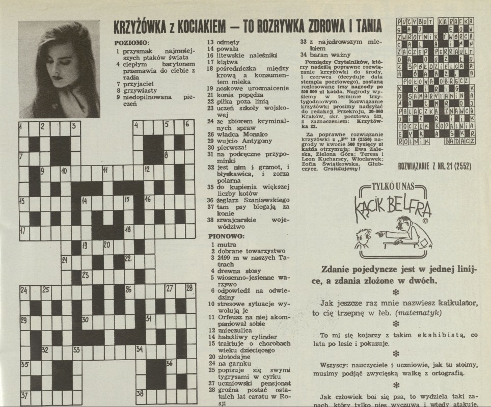 Archiwum / Krzyżówka z kociakiem nr specjalny 22/1994 122/264 Podziel się Tytuł Krzyżówka z kociakiem Rubryka Krzyżówka z kociakiem Artykuł z numeru nr specjalny 22/1994 Data wydania 29 maja 1994 Tagi krzyżówka rozrywka
