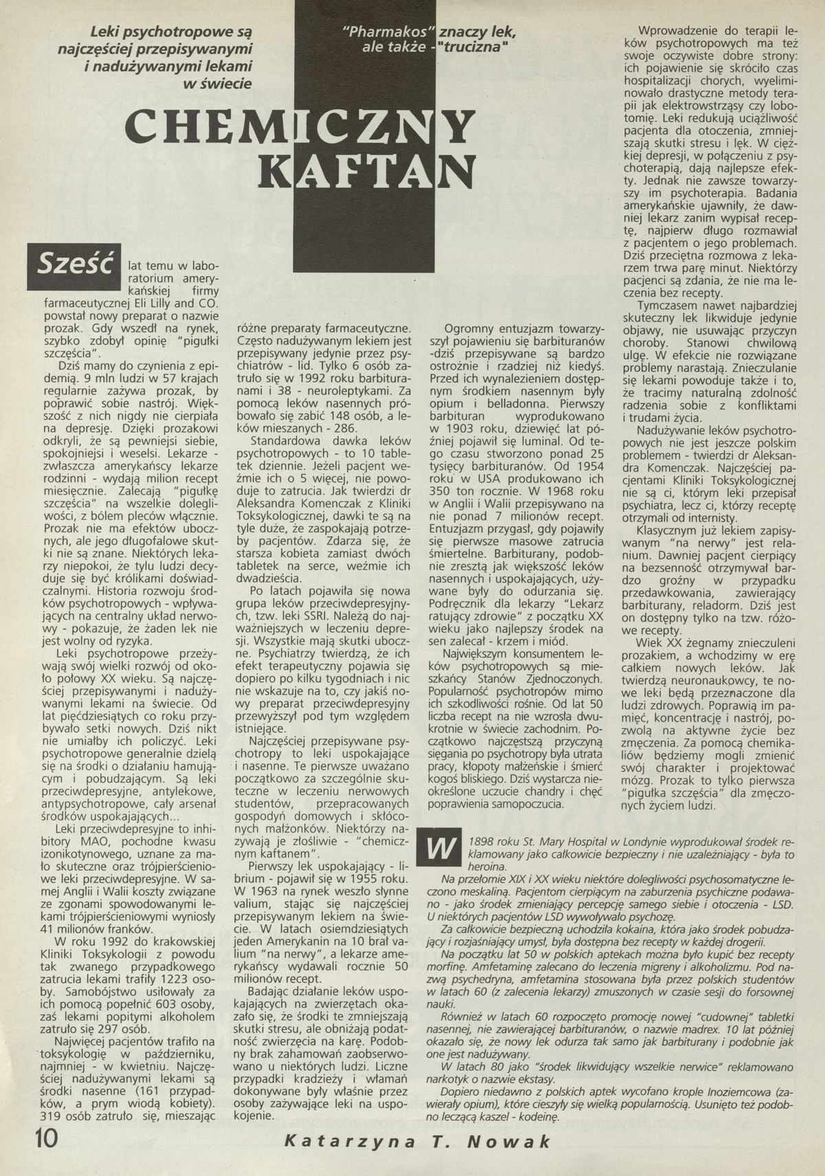 Archiwum / Nauka nr specjalny 30/1994 107593/123969 Podziel się Tytuł Chemiczny kaftan Autor Katarzyna T. Nowak Kategoria Nauka Artykuł z numeru nr specjalny 30/1994 Data wydania 24 lipca 1994 Tagi leki psychotropowe farmaceutyka medycyna