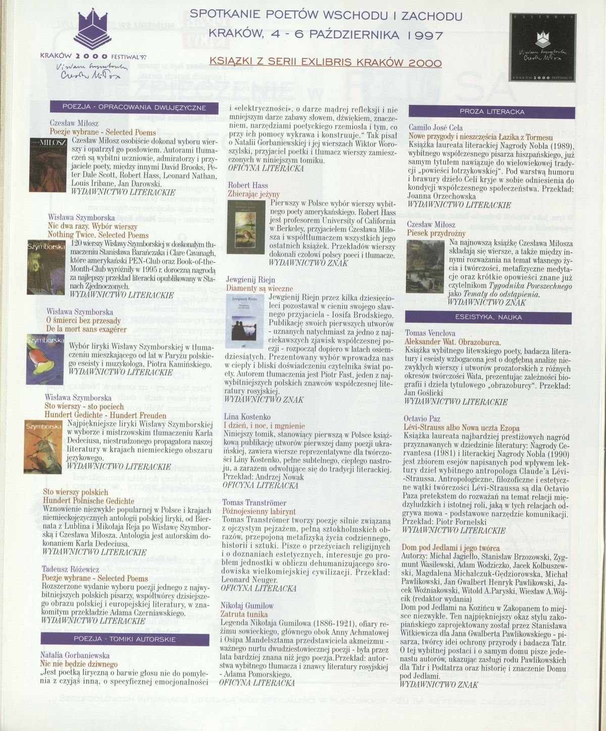 Archiwum / Relacja nr 2727 (39/1997) 53/63 Podziel się Tytuł Spotkanie poetów wschodu i zachodu Kategoria Relacja Artykuł z numeru 2727 (39/1997) Data wydania 28 września 1997 Tagi ksiązki proza poezja