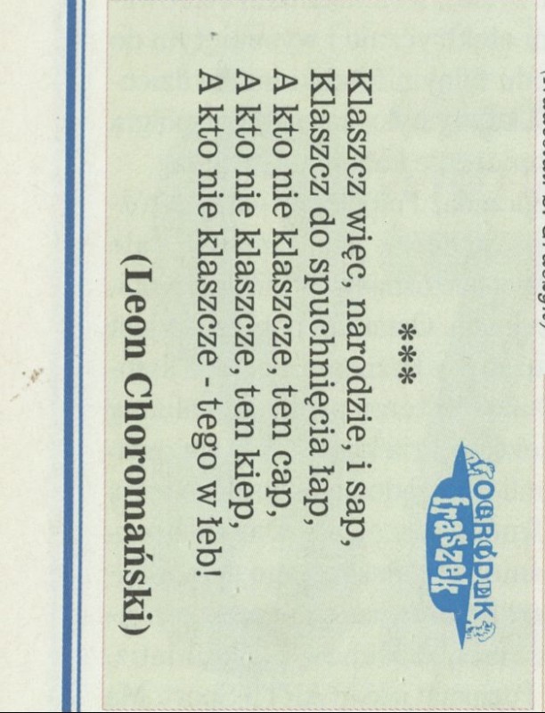 Archiwum nr 2764 (27/1998) 21/1351 Podziel się Tytuł *** Autor Leon Choromański Artykuł z numeru 2764 (2765/1998) Data wydania 14 czerwca 1998 Tagi ogródek fraszek