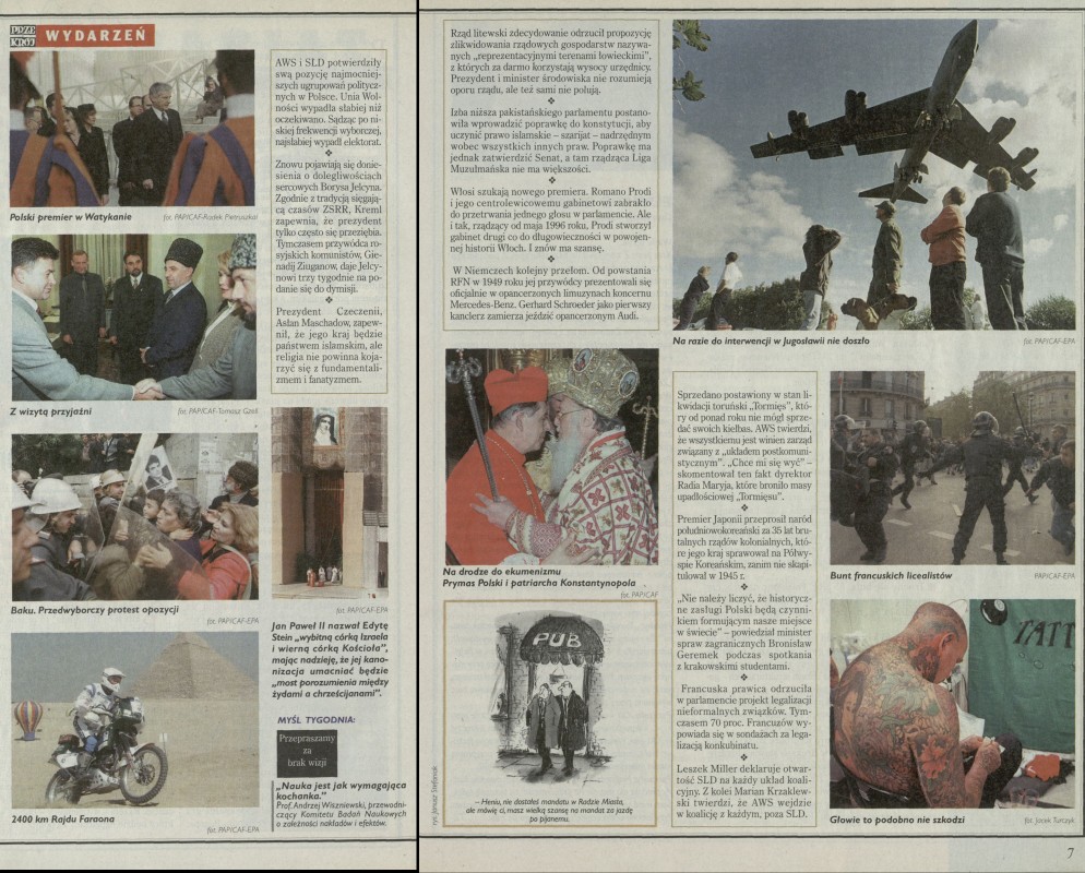 Archiwum / Przekrój tygodnia nr 2783 (27/1998) 34/123 Podziel się Tytuł Przekrój wydarzeń Rubryka Przekrój tygodnia Artykuł z numeru 2783 (2784/1998) Data wydania 25 października 1998 Tagi Baku Jap Paweł II Edyta Stein Rajd Faraona Prodi ekumenizm Miller tatuaż