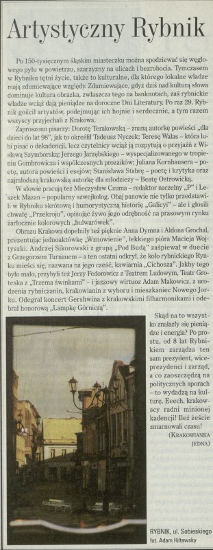 Archiwum / Kultura nr 2783 (27/1998) 04/268 Podziel się Tytuł Artystyczny Rybnik Autor (Krakowianka jedna) Kategoria Kultura Artykuł z numeru 2783 (2784/1998) Data wydania 25 października 1998 Tagi Dni Literatury