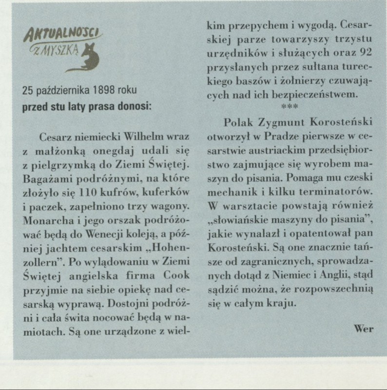 Archiwum / Aktualności z myszką nr 2783 (27/1998) 5/6 Podziel się Tytuł Aktualności z myszką Autor Wer. Rubryka Aktualności z myszką Artykuł z numeru 2783 (2784/1998) Data wydania 25 października 1998 Tagi cesarz Praga