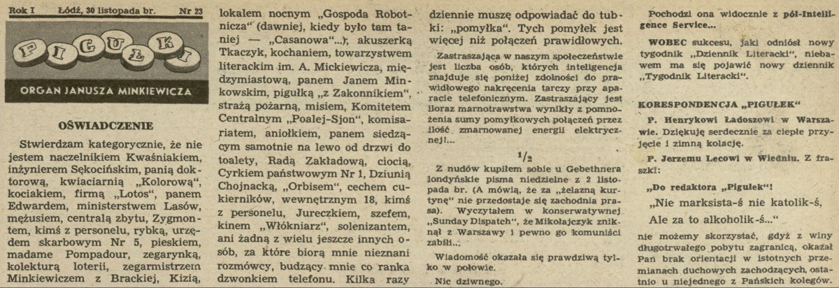 Archiwum / Pigułki - organ Janusza Minkiewicza nr 138 (48/1947) 1002/1815 Podziel się Tytuł Pigułki - organ Janusza Minkiewicza Autor Janusz Minkiewicz Rubryka Pigułki - organ Janusza Minkiewicza Artykuł z numeru 138 (48/1947) Data wydania 30 listopada 1947 Tagi satyra telefon Mikołajczyk