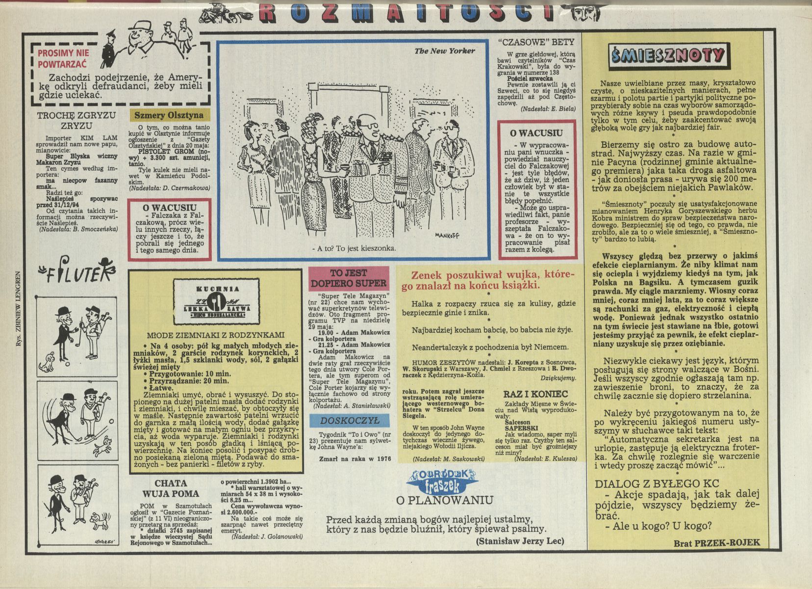 Archiwum / Rozmaitości [old] nr 2559 (28/1994) 107512/123969 Podziel się Tytuł Rozmaitości Rubryka Rozmaitości [old] Artykuł z numeru 2559 (28/1994) Data wydania 10 lipca 1994 Tagi rozmaitości
