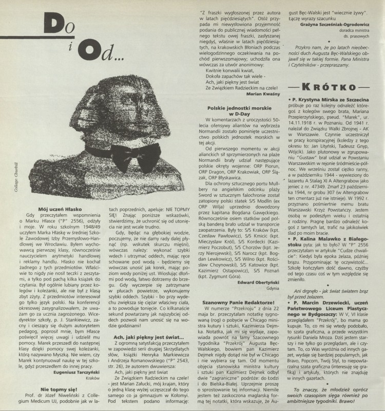 Archiwum / Listy do i od redakcji nr 2560 (29/1994) 24/50 Podziel się Tytuł [Listy] Rubryka Listy do i od redakcji Artykuł z numeru 2560 (29/1994) Data wydania 17 lipca 1994 Tagi listy do redakcji