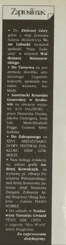 Archiwum / Zaprosili nas nr 2563 (32/1994) 15/37 Podziel się Tytuł Zaprosili nas Rubryka Zaprosili nas Artykuł z numeru 2563 (32/1994) Data wydania 7 sierpnia 1994 Tagi zaprosili nas