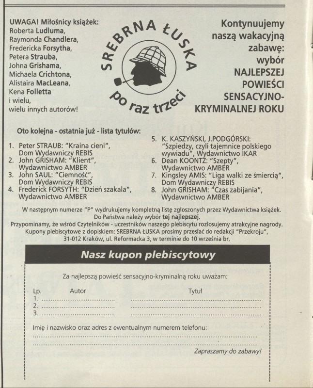 Archiwum / Różności nr 2565 (34/1994) 217/2138 Podziel się Tytuł [Plebiscyt] Kategoria Różności Artykuł z numeru 2565 (34/1994) Data wydania 21 sierpnia 1994 Tagi plebiscyt książka literatura