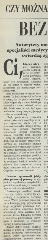 Archiwum / Społeczeństwo nr 2570 (39/1994) 108154/123969 Podziel się Tytuł Czy można żyć bez miłości? Autor Jolanta Herian-Ślusarska Kategoria Społeczeństwo Artykuł z numeru 2570 (39/1994) Data wydania 25 września 1994 Tagi miłość uczucia psychologia