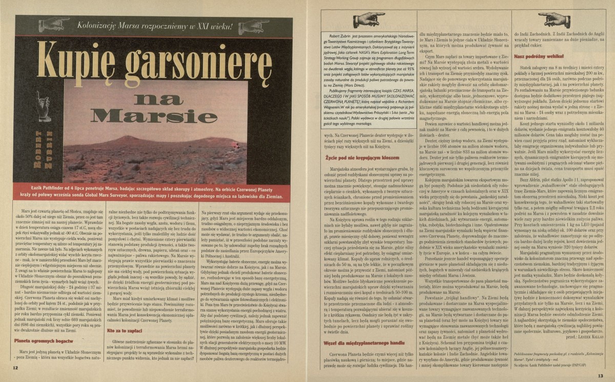 Archiwum / Artykuł nr 2728 (40/1997) 18/238 Podziel się Tytuł Kupię garsonierę na Marsie Autor Leszek Kallas Kategoria Artykuł Artykuł z numeru 2728 (40/1997) Data wydania 5 października 1997 Tagi Mars planeta