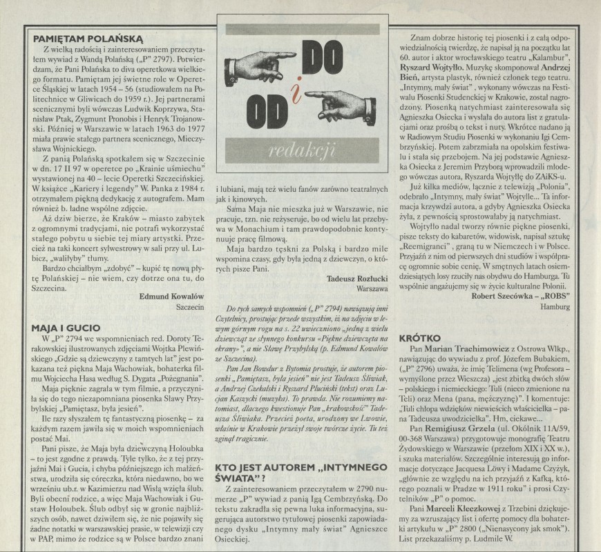Archiwum / Listy do i od redakcji nr 2804 (28/1999) 12/48 Podziel się Tytuł Do i od redakcji Rubryka Listy do i od redakcji Artykuł z numeru 2804 (2805/1999) Data wydania 21 marca 1999 Tagi diwa