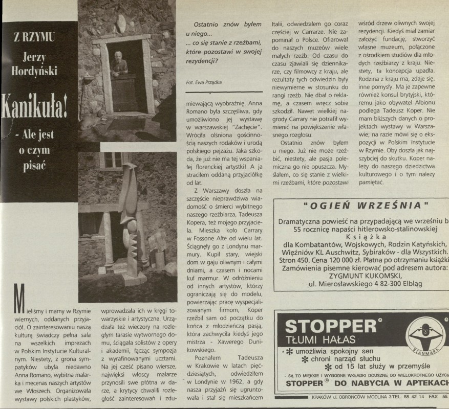 Archiwum / Relacja nr specjalny 37/1994 43/79 Podziel się Tytuł Kanikuła! - Ale jest o czym pisać Autor Jerzy Hordyński Kategoria Relacja Artykuł z numeru nr specjalny 37/1994 Data wydania 11 września 1994 Tagi Rzym Tadeusz Koper śmierć kultura