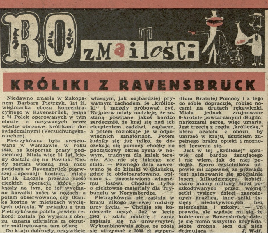 Archiwum / Rozmaitości [old] nr 123 (33/1947) 23/32 Podziel się Tytuł Króliki z Ravensbrück Autor Jerzy Waldorff Rubryka Rozmaitości [old] Artykuł z numeru 123 (33/1947) Data wydania 17 sierpnia 1947 Tagi obozy koncentracyjne Ravensbrück proces norymberski