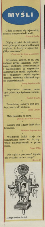 Archiwum / Myśli nr 2571 (40/1994) 74/95 Podziel się Tytuł Myśli Autor Stella Varcaby Rubryka Myśli Artykuł z numeru 2571 (40/1994) Data wydania 2 września 1994 Tagi cytaty aforyzmy