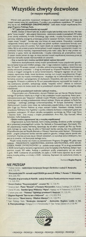 Archiwum / Reklamy nr 2571 (40/1994) 107946/123969 Podziel się Tytuł [Reklama] Rubryka Reklamy Artykuł z numeru 2571 (40/1994) Data wydania 2 września 1994 Tagi radio dwójka polskie radio reklama