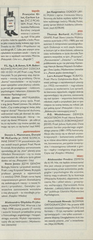 Archiwum / Czytać albo nie czytać? nr 2799 (28/1999) 11/11 Podziel się Tytuł Czytać nie czytać Rubryka Czytać albo nie czytać? Artykuł z numeru 2799 (2800/1999) Data wydania 14 lutego 1999 Tagi Steve Jones: Język genów Dennis L. Mammana Donald W. McCarthy Jr: Inne słońca inne światy? Thomas Berhard: Autobiografie Jan Kasprowicz: Ogrody liryki