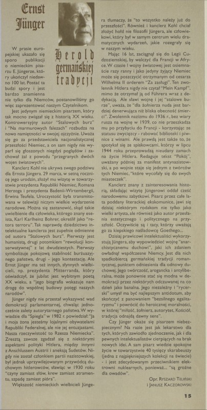 Archiwum / Proza nr 2606 (23/1995) 202/211 Podziel się Tytuł Herold germańskiej tradycji Autor Ernst Junger Kategoria Proza Artykuł z numeru 2606 (23/1995) Data wydania 4 czerwca 1995 Tagi Ernst Junger Niemcy