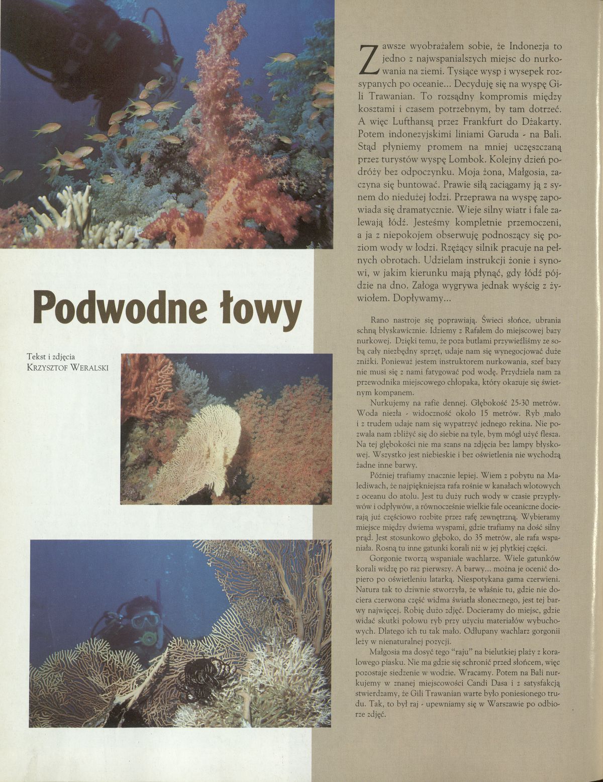 Archiwum / Fotoreportaż nr 2607 (24/1995) 110294/123969 Podziel się Tytuł Podwodne łowy Autor Krzysztof Weralski Kategoria Fotoreportaż Artykuł z numeru 2607 (24/1995) Data wydania 11 czerwca 1995 Tagi Gili Trawanian nurkowanie