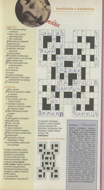 Archiwum / Krzyżówka z kociakiem nr 2608 (25/1995) 110335/123969 Podziel się Tytuł Krzyżówka z kociakiem Rubryka Krzyżówka z kociakiem Artykuł z numeru 2608 (25/1995) Data wydania 18 czerwca 1995 Tagi krzyżówka z kociakiem