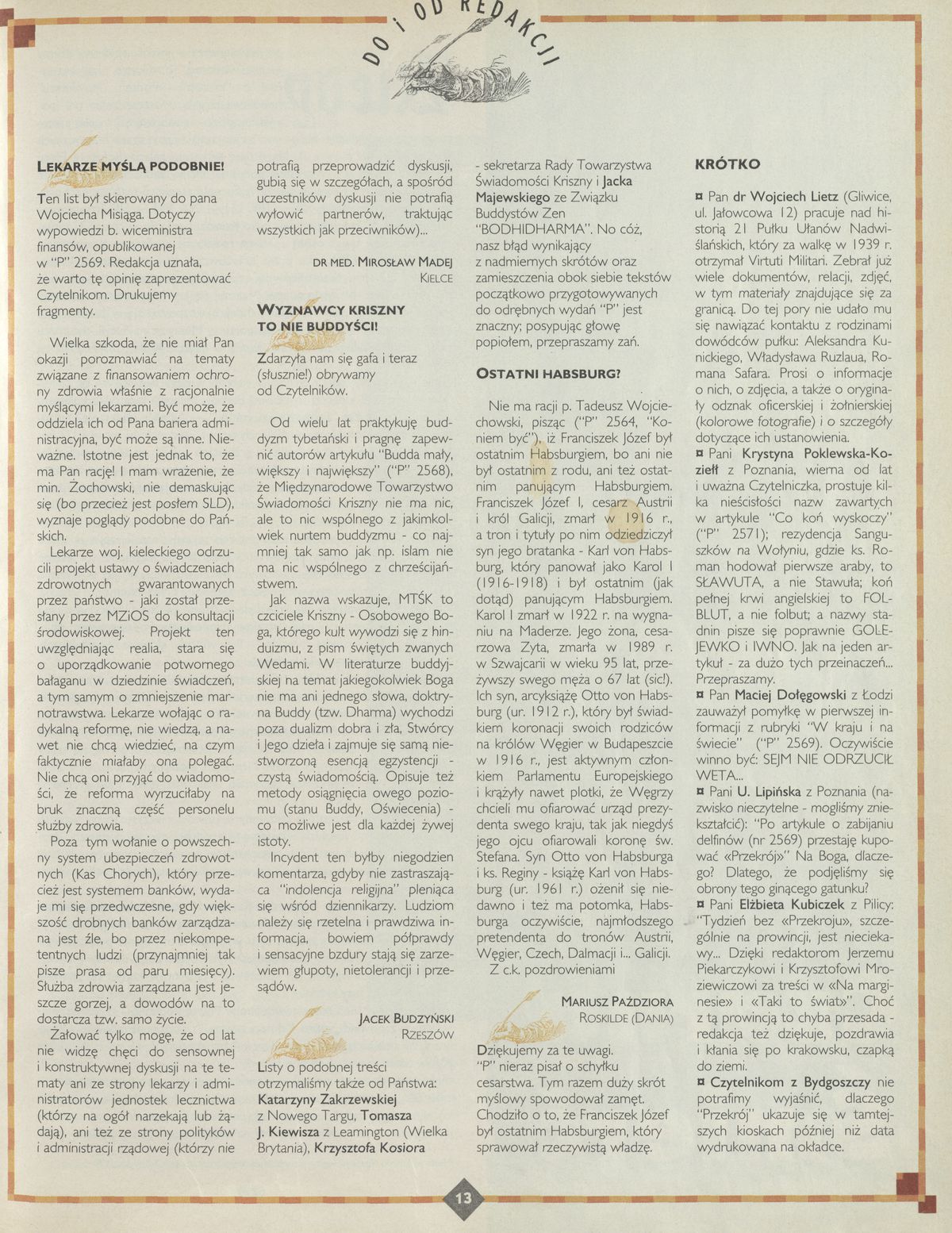 Archiwum / Listy do i od redakcji nr specjalny 43/1994 15623/123969 Podziel się Tytuł Do i od redakcji Rubryka Listy do i od redakcji Artykuł z numeru nr specjalny 43/1994 Data wydania 23 października 1994 Tagi listy do i od redakcji różności