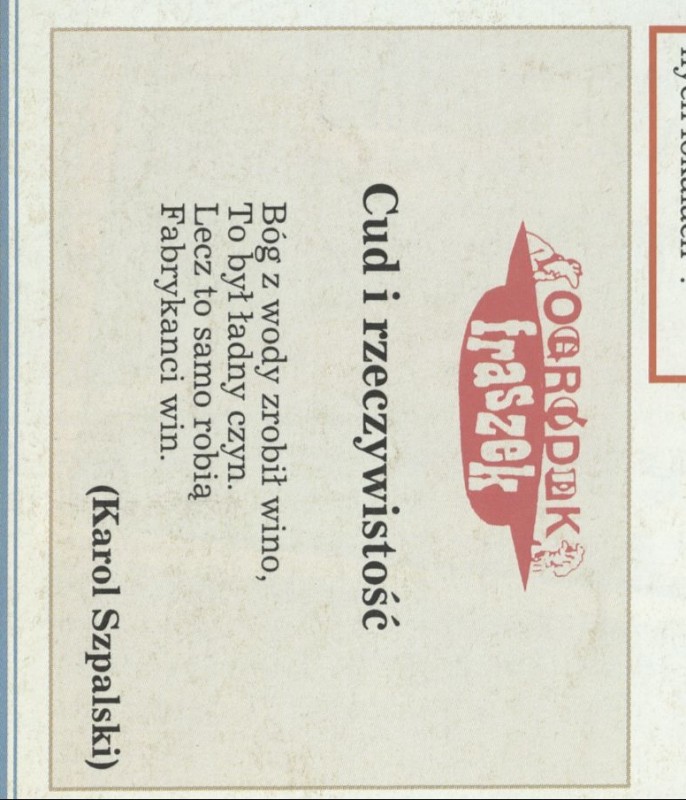 Archiwum / Poezja nr 2610 (27/1995) 25/50 Podziel się Tytuł Ogródek fraszek Kategoria Poezja Artykuł z numeru 2610 (27/1995) Data wydania 2 lipca 1995 Tagi ogródek fraszek