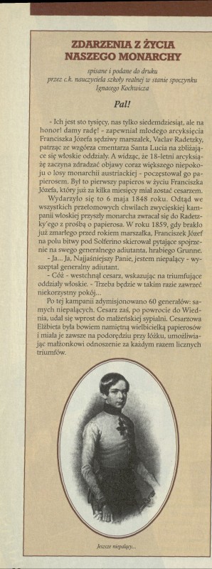 Archiwum nr 2666 (30/1996) 64/985 Podziel się Tytuł Pal! Artykuł z numeru 2666 (30/1996) Data wydania 28 lipca 1996 Tagi Franciszek Józef